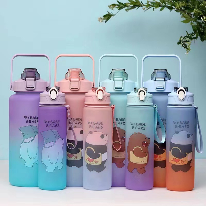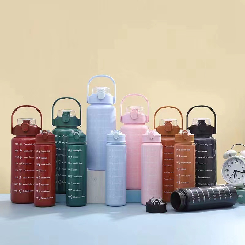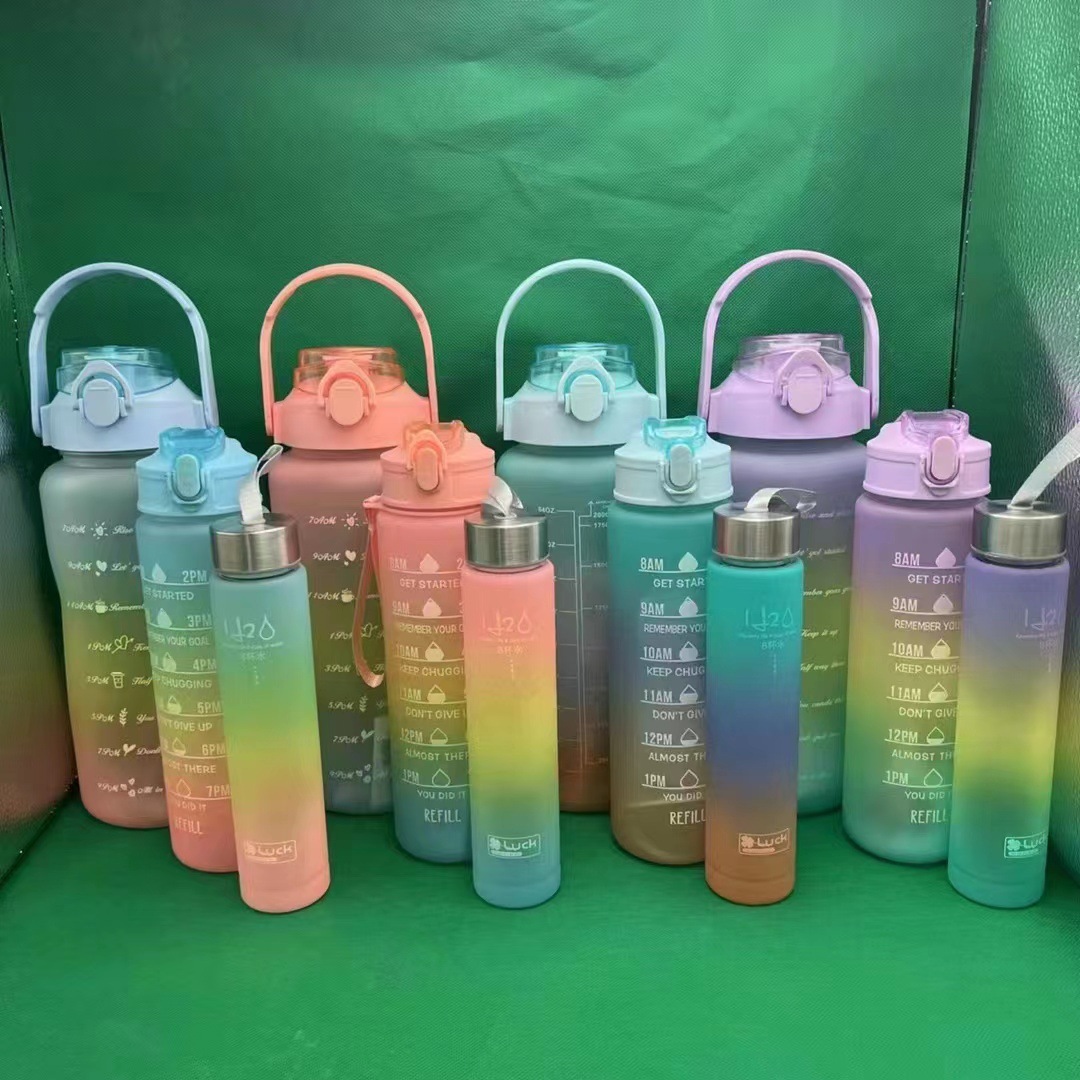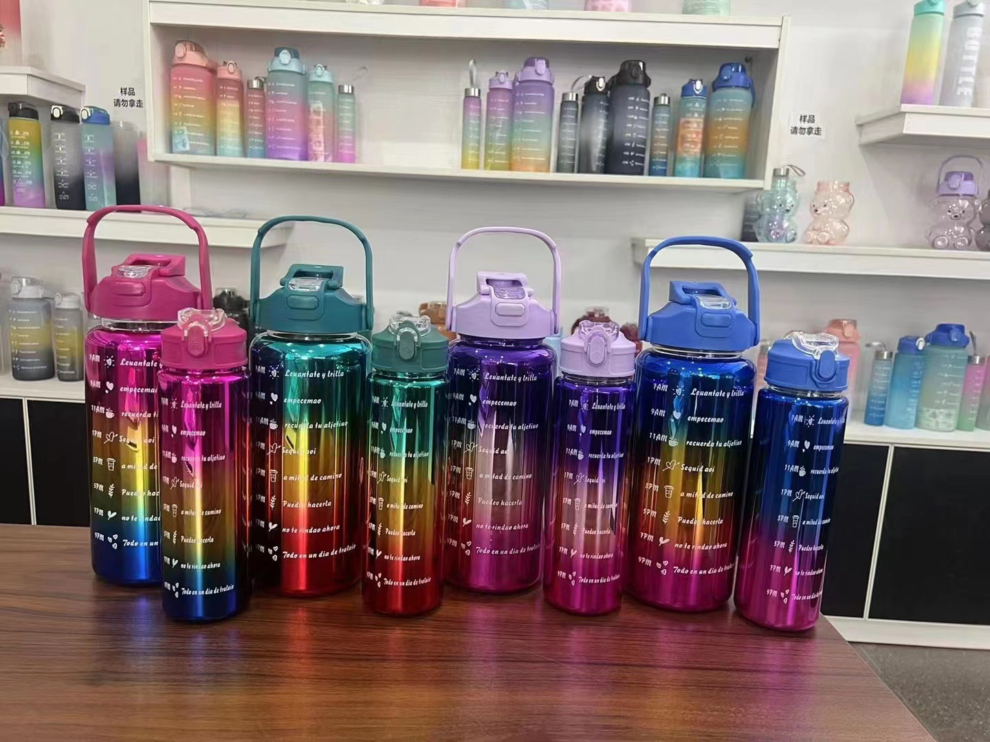 Three Sets Of Cross-Border Large Capacity Sports Plastic Water Cup Gradual Electroplating Spray Paint Large Pot Portable Pot For Men And Women Car Pot